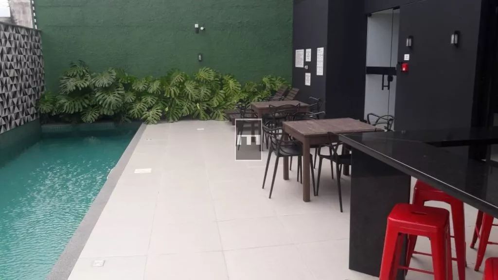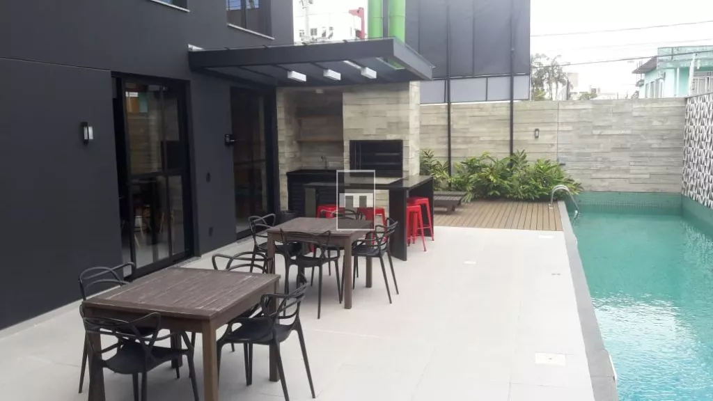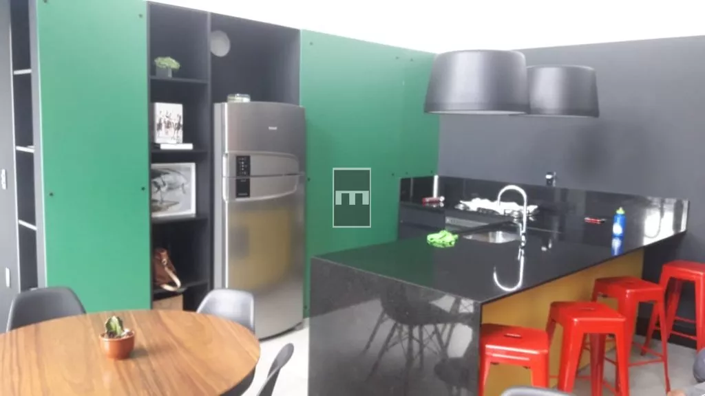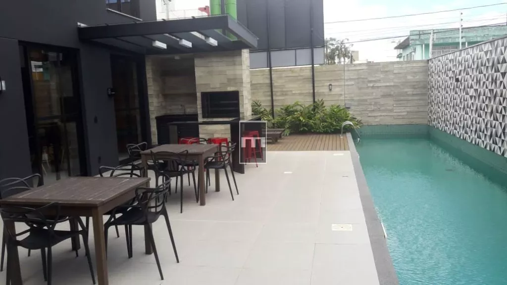 Hall, cozinha/ Área serviço, com churrasqueira, circulação, sala de estar/jantar, Sacada, 1 dormitório , BWC e suite.